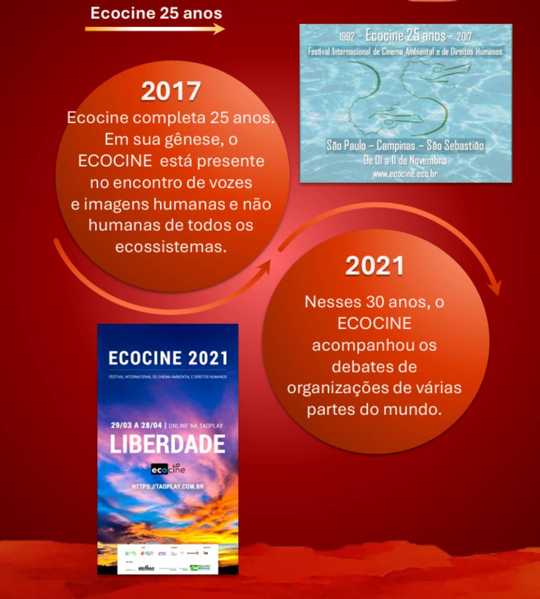 ECOCINE, o primeiro festival ambiental do Brasil e segundo do mundo, chega à sua 33ª edição com o intuito de apresentar a visão e pensamento de realizadores de audiovisual do mundo, relacionados a dois aspectos fundamentas da sustentabilidade da vida humana: o meio ambiente e os direitos humanos.