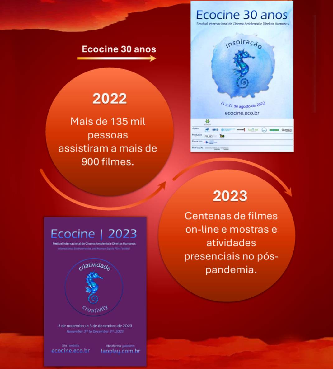 O ECOCINE abre espaço também para lançamento de livros e espetáculos teatrais e de dança com temáticas afins, impactando também, positivamente, estes segmentos culturais.